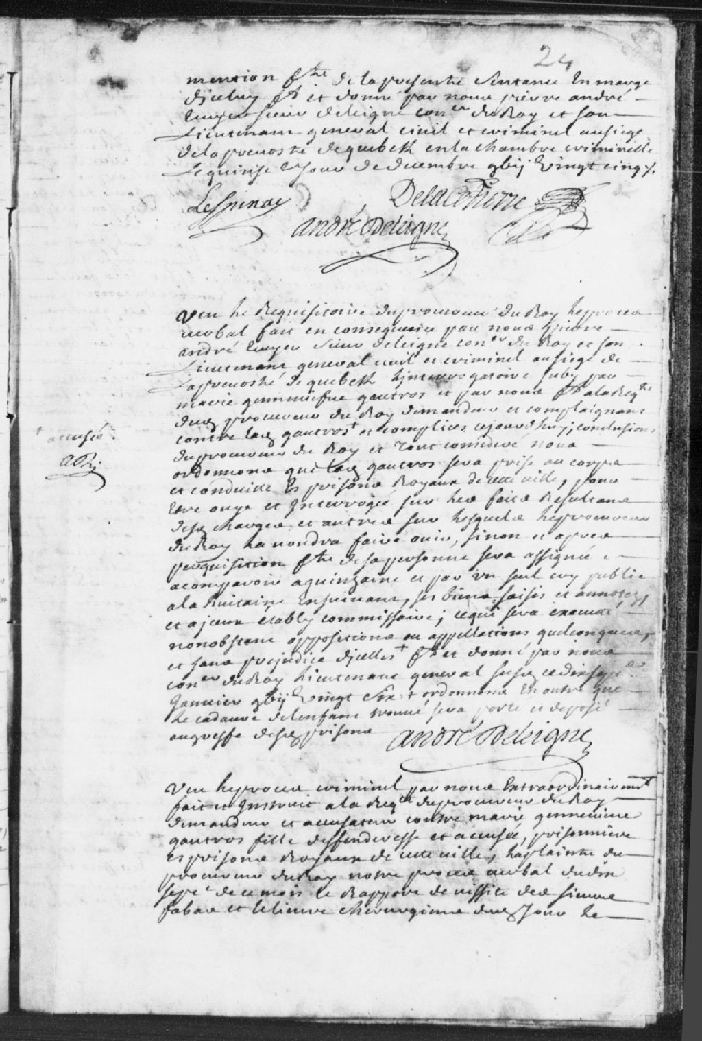 Procès de Marie-Geneviève Gaudreau, fille, défenderesse et prisonnière ; mention du rapport de visite par Fabas et LeLièvre, chirurgiens, mention du rapport de Madeleine Boucher, épouse en secondes noces du sieur Berry, sage femme jurée et d'Anne Dufresne, veuve du feu Jean Létourneau, aussi sage femme, interrogatoire de l'accusée sur la sellette, mention faite que l'accusée a nouvellement accouché, qu'elle est malade et ne peut être déplacée