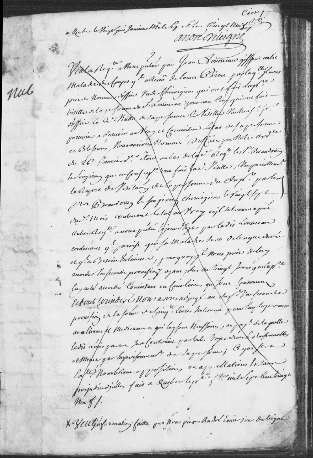 Cause entre Jean Louineau (Luneau), demandeur et complaignant, gisant au lit, malade des coups qu'il a reçus, et Louis Parent, accusé et complice ; mention des sieurs Beaudoin (Beaudouin) et Soupiran, chirurgiens nommés d'office pour faire la visite et le procès-verbal de visite dudit malade, il en est conclu que la maladie durera longtemps et que le malade aura besoin d'aliments, il est convenu de lui accordé une seconde provision car la première fut accordée il y a plus de 20 jours, et ledit accusé est condamné à payer 50 livres pour les aliments et médicaments