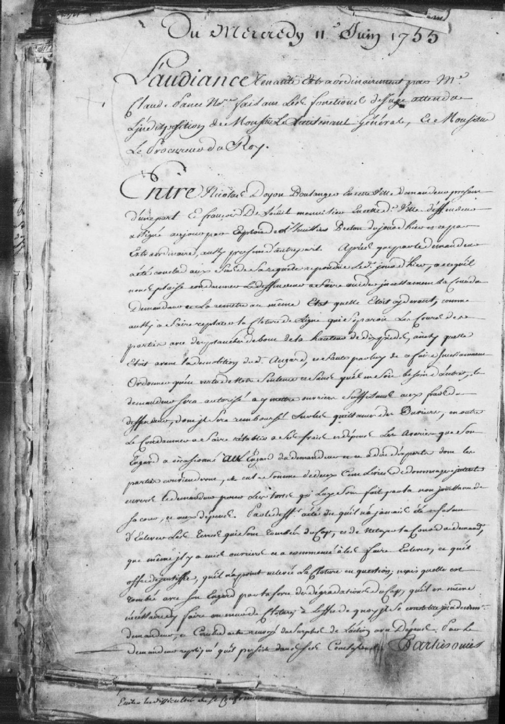 Cause entre Jean Plamondon, arpenteur, demeurant à Lorette, demandeur, assisté de maître Saillant, notaire, et Joseph Drolet, habitant de Lorette, défendeur, assisté de maître Panet, notaire ; il est ordonné que le défendeur sera tenu de rendre au demandeur deux vaches, 20 juin 1755, Archives nationales à Québec, Fonds Prévôté de Québec, (03Q,TL1,S11,SS1,D84,P122).