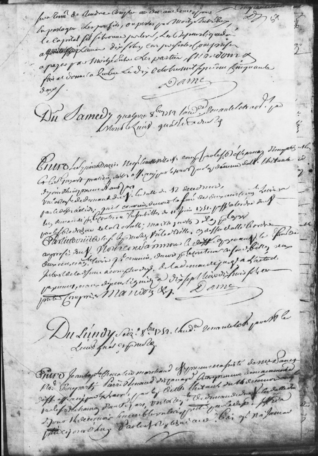 Cause entre Jean-Baptiste Chevalier, marchand, demandeur, assisté de Panet, notaire, et Pierre Renaud dit Canard, entrepreneur de maçonnerie, défendeur ; il est ordonné que le sieur LaPalme, architecte nommé par le demandeur, et Pierre Marcoux, maître entrepreneur de maçonnerie nommé par le défendeur, procéderont à la visite de la maison du demandeur pour voir s'il y a défaut d'exécution par rapport au marché fait le 20 mars 1752