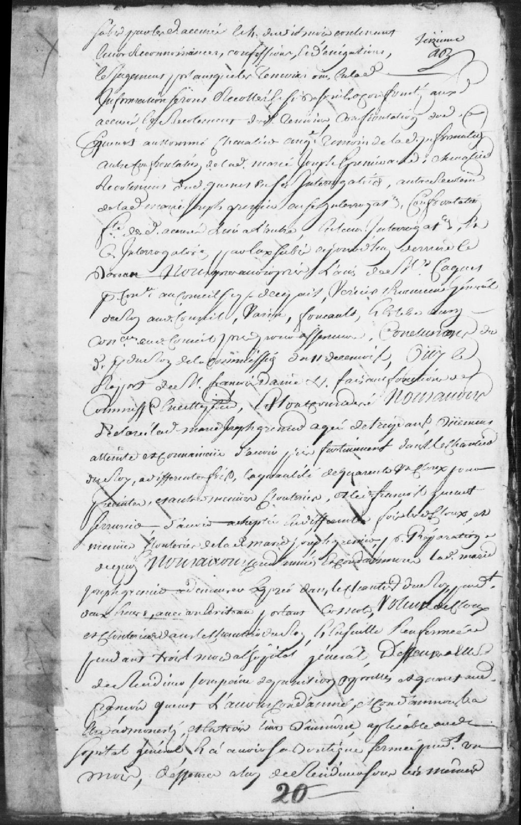 Procès de Thomas Belon dit LaColombe, défendeur, accusé d'avoir vendu de l'eau-de-vie (alcool) aux sauvages (amérindiens) ; informations, communication et interrogatoire, dépositions des témoins, récolements et confrontations, et interrogatoire de l'accusé sur la sellette ; l'accusé est trouvé coupable et il est condamné à être appliqué au carcan pendant trois heures, avec un écriteau pourtant les mots «vendeur d'eau-de-vie aux sauvages», il est de plus condamné à trois livres d'amende envers le Roi, avec défense de récidiver, 20 juillet 1747, Archives nationales à Québec, Fonds Prévôté de Québec, (03Q,TL1,S11,SS1,D86,P35).