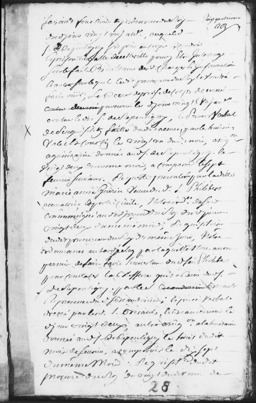 Cause entre Nicolas-Jacquin Philibert, négociant de Québec, demandeur et accusateur, décédé, lequel fut remplacé à titre de requérant par Marie-Anne Guérin, veuve dudit défunt, demanderesse depuis le décès de son époux, et le sieur de Repentigny, officier des troupes du détachement de la Marine en Nouvelle-France, défendeur, accusé d'avoir homicidé (tué) ledit défunt ; mention de la visite du chirurgien Beaudoin, information, mention des nommés Bouchard fils, Pierre Voyer, Joseph Delorme et le nommé Dumont et son épouse, mention d'un procès-verbal de perquisition sur lesdits accusés, informations, récolements et confrontations ; une sentence est prononcée et ledit accusé est déclaré coupable du meurtre dudit Philibert, attendu la qualité de gentilhomme du coupable, il est condamné à avoir la tête tranchée sur un échafaud qui sera dressé en la place publique de la Basse-Ville de Québec, il est de plus condamné à 8 000 livres de réparation envers ladite veuve et aux dépens du procès, ses biens seront confisqués et une somme de 500 livres sera versée à Sa Majesté