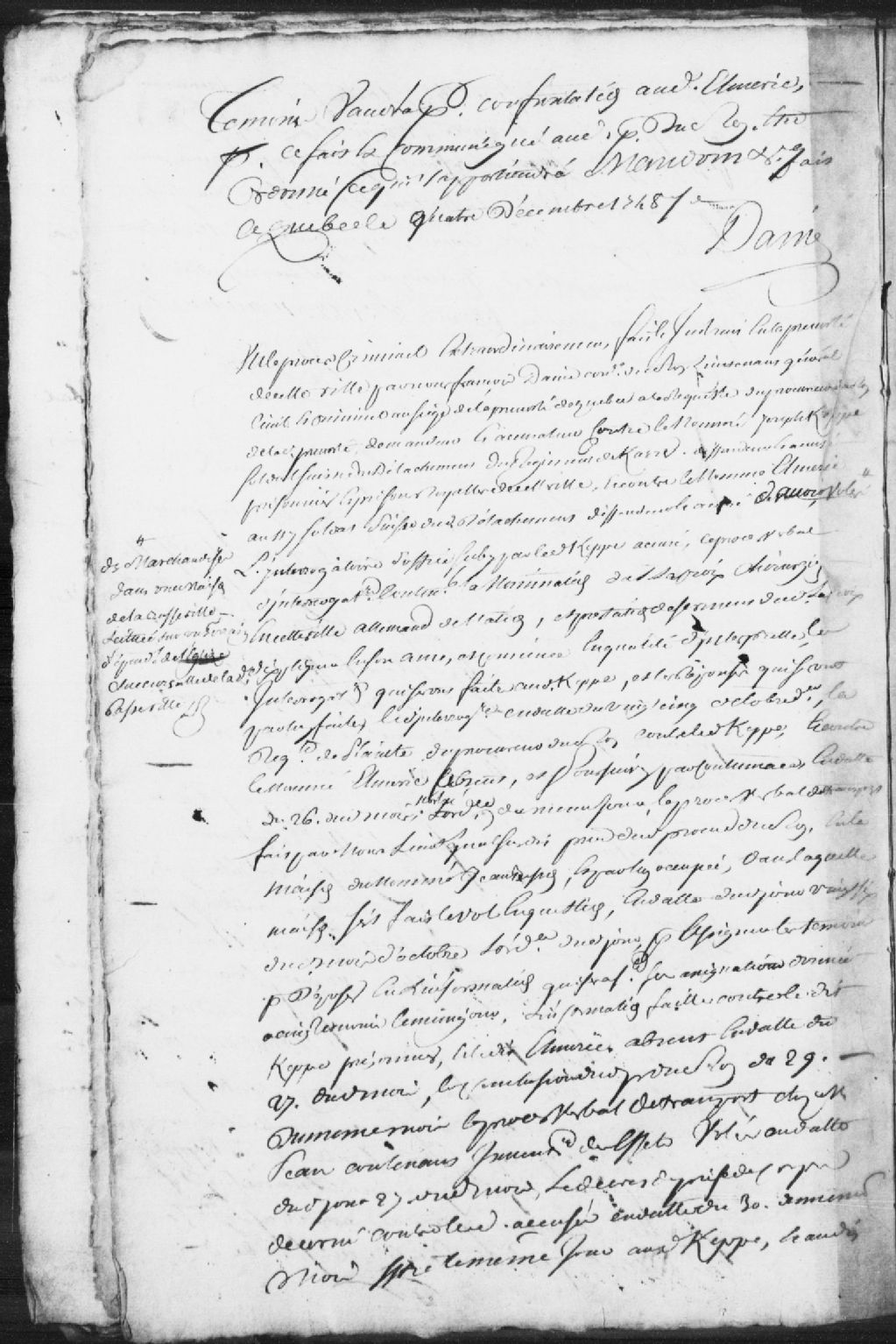 Procès des nommés Joseph Koppe et Elmerie, soldats suisses du détachement du régiment de Karre (Kares - Karer), en garnison à Québec, défendeurs, accusés d'avoir volé des marchandises dans une maison de la Basse-Ville de Québec ; il est ordonné que lesdits accusés seront pris au corps (arrêtés) et menés en prison pour y être interrogés, 30 octobre 1748, Archives nationales à Québec, Fonds Prévôté de Québec, (03Q,TL1,S11,SS1,D86,P59).