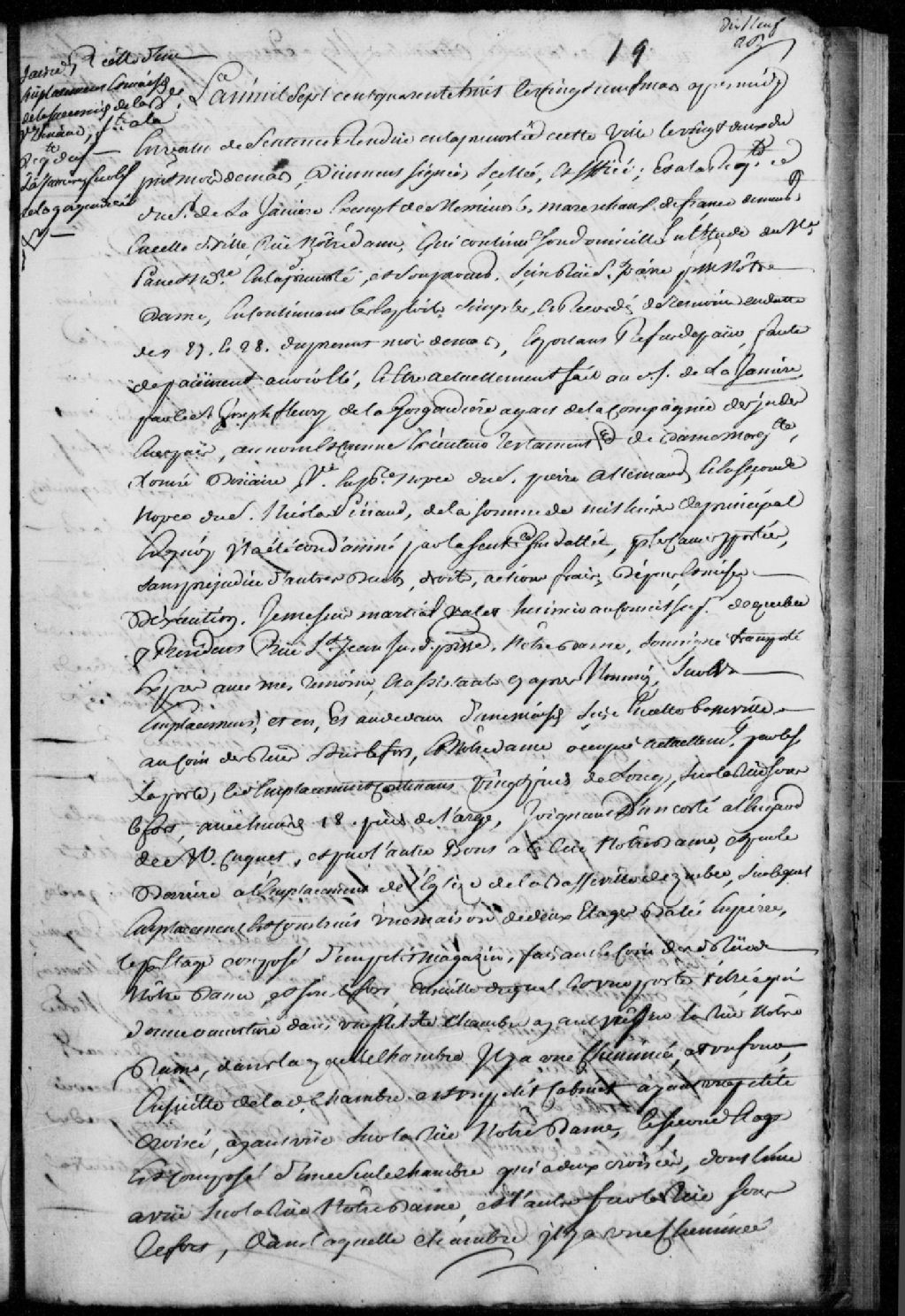 Saisie d'un emplacement et d'une maison sis au coin de la rue Sous-le-Fort, laquelle maison est occupée actuellement par le sieur LaPorte, suivant une sentence rendue en la Prévôté de Québec le 22 mars 1748, à la requête du sieur de la Janière, exempt de messieurs les maréchaux de France, faute de paiement d'une somme de 1000 livres par Joseph Fleury de la Gorgendière (Lagorgendière), agent de la Compagnie des Indes en Nouvelle-France, au nom et comme exécuteur testamentaire de la dame Marguerite-Louise Douaire, veuve en premières noces du sieur Pierre Allemand, et en secondes noces du sieur Nicolas Pinaud ; mention du transport de Martial Valet, huissier au Conseil supérieur de Québec, audit emplacement ; description de l'emplacement et maison, et noms des voisins ; Jacques Beausang, demeurant à Québec, accepte la commission, Pierre Doyon, marchand demeurant rue Saint-Joseph, et Nicolas Godin LaPoterie, bijoutier demeurant rue Couillard, sont témoins