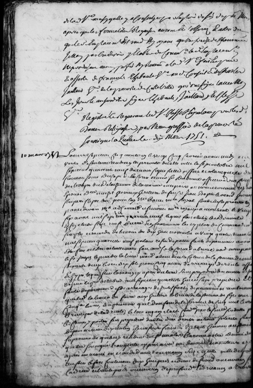Saisie d'une maison sise rue Sous-le-Fort, en vertu d'une sentence rendue en la Prévôté de Québec le 7 octobre 1749, à la requête de François-Joseph Dusapt (Dechapt) de LaCorne (Delacorne), écuyer, sieur Dubreuil, officier d'une compagnie des troupes du détachement de la Marine en Nouvelle-France, au nom et comme ayant épousé demoiselle Michelle Hervieux, héritière de feu Jean-Baptiste Levrard Hervieux, son père, comparant par maître Panet, notaire fondé de sa procuration, faute de paiement par Joseph Lépine dit LaLime, absent de la Nouvelle-France, d'une somme de 1 062 livres et 10 sols ; mention du transport de François Thibault, huissier du Conseil, en ladite maison ; description de la maison et du terrain, et noms de voisins ; Joseph Metot (Méthot), aubergiste demeurant sur la rue Champlain à Québec, accepte la commission, Charles Breton, huissier de la Prévôté demeurant au quartier Saint-Roch, et Nicolas Gaudin LaPoterie, bijoutier demeurant sur la rue Saint-Jean à Québec, sont témoins
