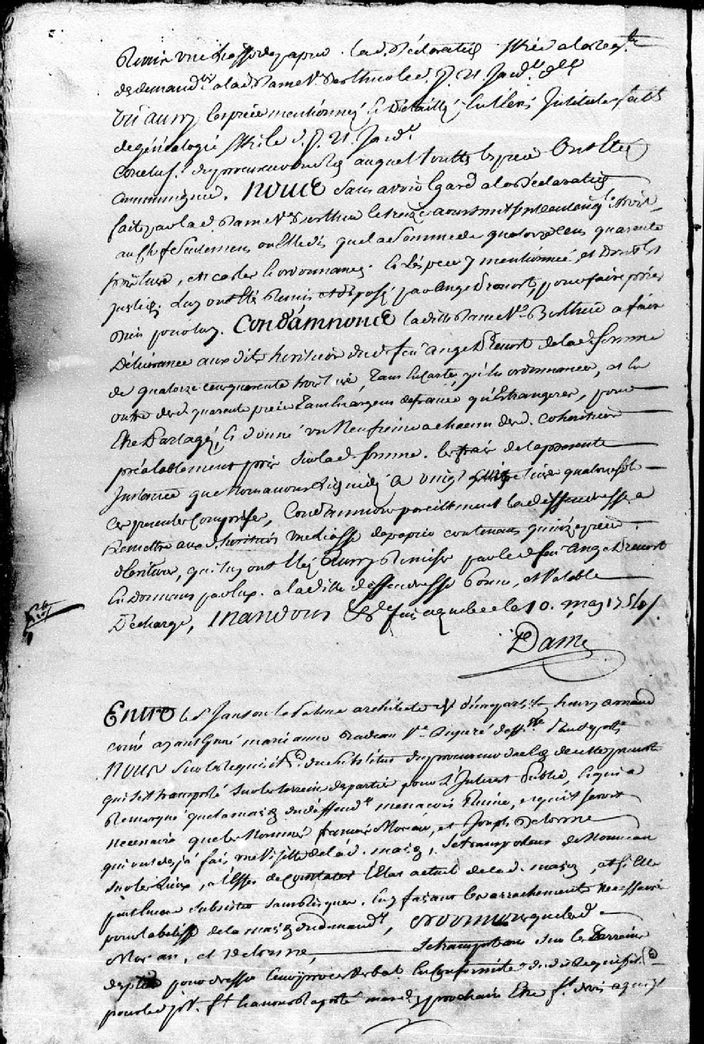 Cause entre le sieur Janson Lapalme, architecte, demandeur, et Henri Arnaud, comme ayant épousé Marie-Anne Badeau, veuve de feu Dupéré, défendeur, à propos de la maison du défendeur qui est menacée de ruine ; dans l'intérêt public, il est ordonné que François Moreau et Joseph Delorme feront la visite de ladite maison et dresseront un procès-verbal, 16 mai 1754, Archives nationales à Québec, Fonds Prévôté de Québec, (03Q,TL1,S11,SS1,D97,P59).