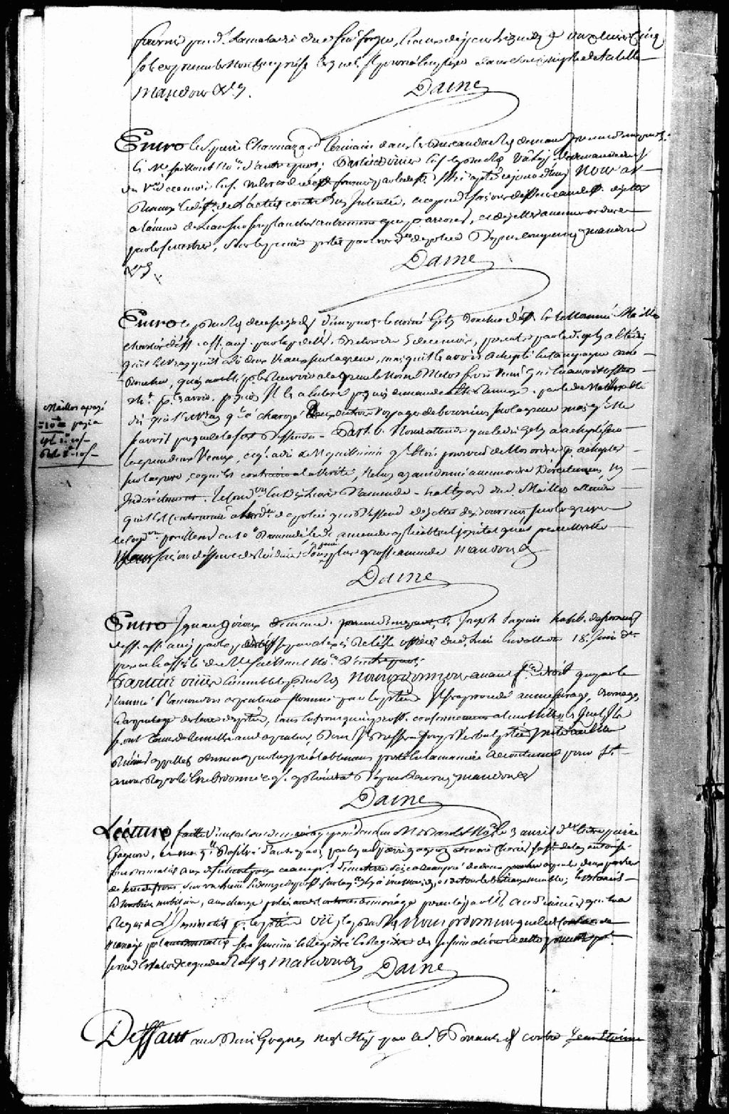 Cause entre le sieur Pierre Chamazard, écrivain dans le Bureau du Roi, demandeur; et maître Saillant, notaire, défendeur, ledit défendeur est renvoyé de l'action contre lui intentée, avec défense à l'avenir de jeter de l'eau sur ses planchers et de jeter ses ordures par les fenêtres