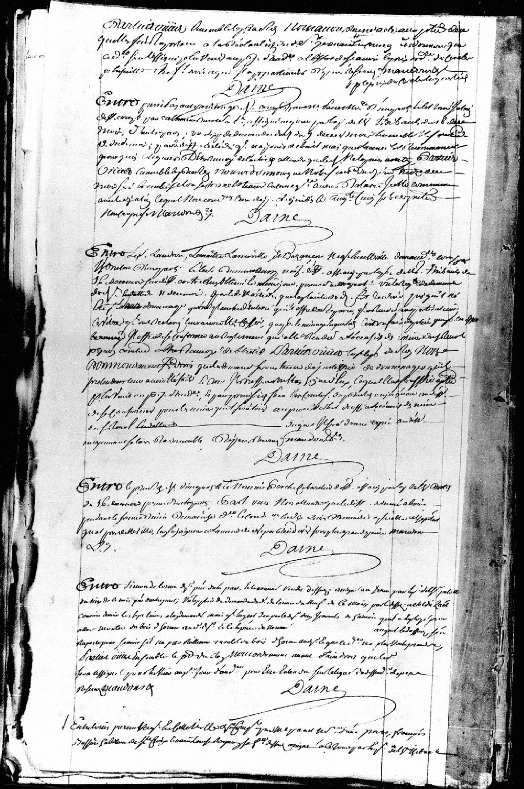 Cause entre Pierre Payant Saint-Onge, demandeur, comparant par maître Panet, notaire; et le nommé Jallain (Jalain), défendeur, comparant par Catherine Duvet (Duret), son épouse, il est ordonné que la sentence du 13 juillet 1751 sera exécuté selon sa forme et teneur, ledit défendeur est condamné aux dépens liquidés à 55 sols