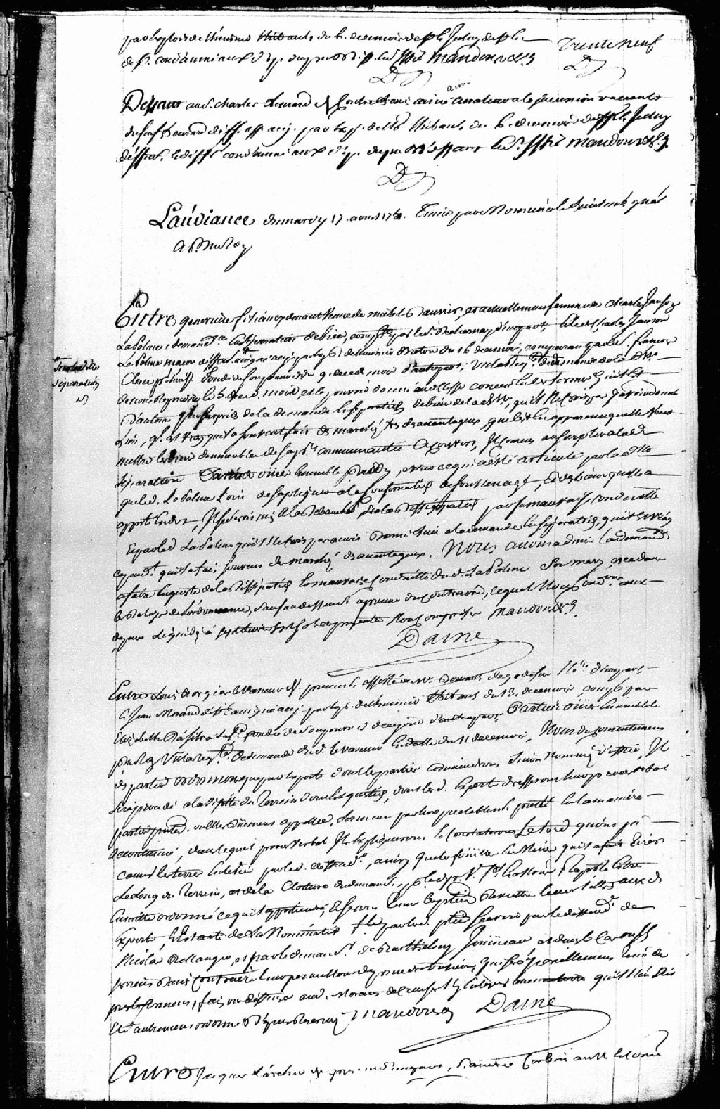 Défaut à Charles Levrard, demandeur, contre Louis Aimé, curateur à la succession vacante du feu sieur Levrard, défendeur et défaillant, ledit défaillant est condamné aux dépens