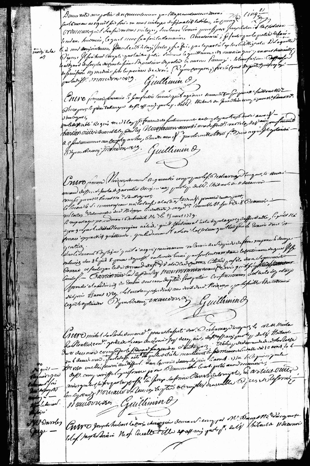 Cause entre le sieur Joseph-Hubert Lacroix, chirurgien, demandeur, comparant par le maître Panet, notaire; et le sieur Joseph Riverain (Riverin), négociant de Québec, défendeur, comparant par maître Saillant, notaire, il est ordonné que les pièces des parties resteront sur le Bureau pour en être délibéré, 15 juin 1751, Archives nationales à Québec, Fonds Prévôté de Québec, (03Q,TL1,S11,SS1,D99,P33).