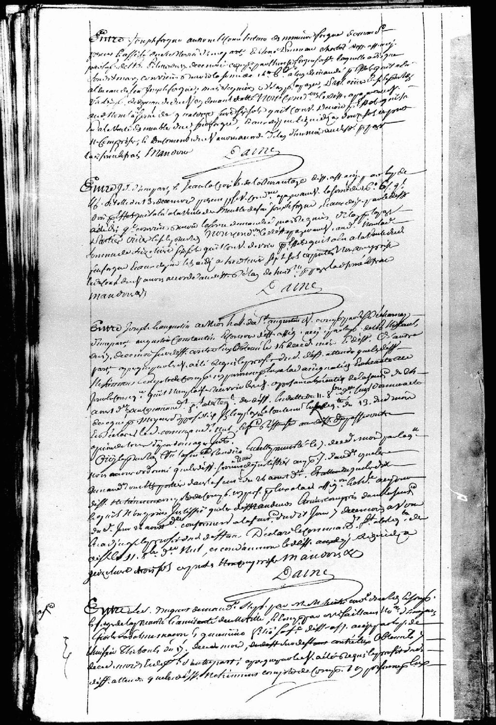 Cause entre le sieur Becquet, demandeur, stipulant par le sieur Hiché, conseillé du roi et son procureur au siège de la Prévôté et amirauté de Québec, comparant par maître Saillant, notaire; et Charles Lapalme, maçon et Geneviève Filion (Filio, Fillio, Filieau), son épouse, défendeurs et défaillants, mention d'un billet en date du 4 mars 1734, les défendeurs sont condamnés à payer au demandeur la somme de 91 livres et 16 sols, en plus des intérêts et des dépens liquidés à 5 livres et 5 sols