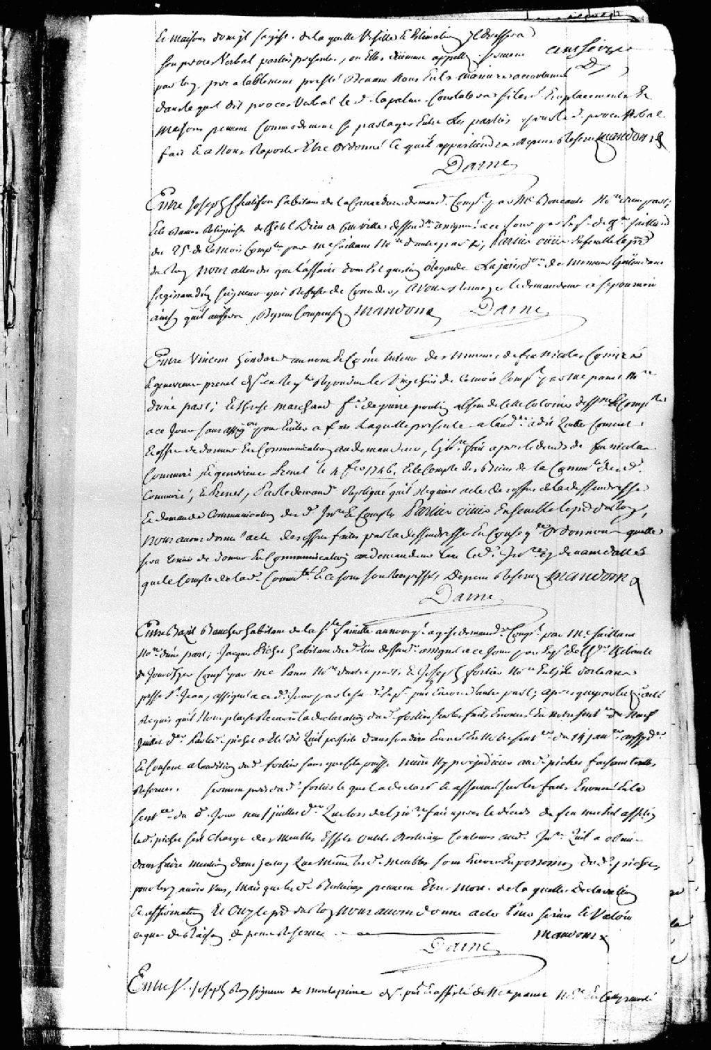 Cause entre Joseph Chalifour, habitant de la Canardière, demandeur, comparant par maître Boucault, notaire; et les Dames religieuses de l'Hôtel-Dieu de Québec, défenderesses, comparantes par maître Saillant, notaire, ledit demandeur est renvoyé de sa demande, 29 février 1752, Archives nationales à Québec, Fonds Prévôté de Québec, (03Q,TL1,S11,SS1,D99,P782).
