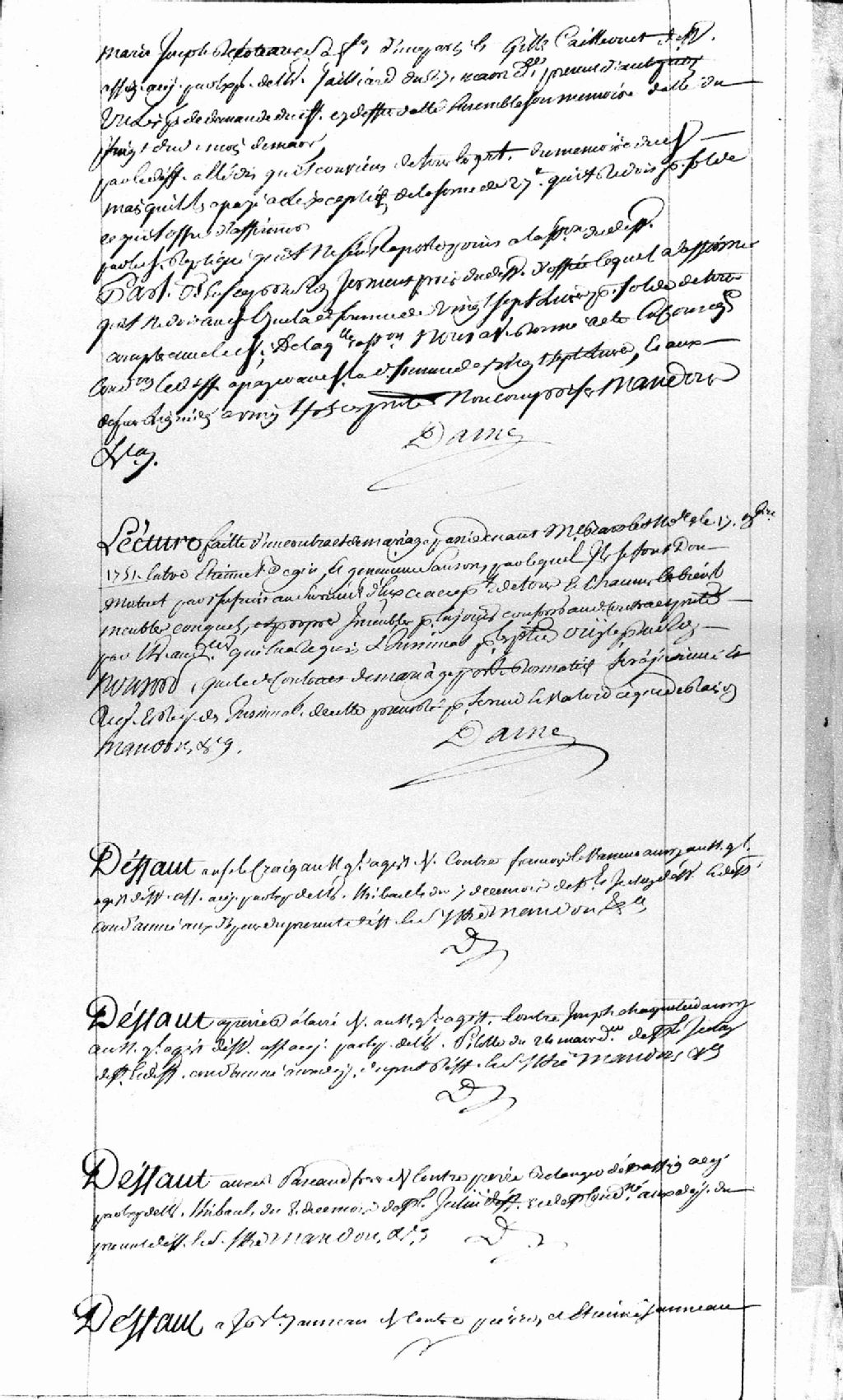 Défaut à Jean-Baptiste Jeanneau (Jeannot), demandeur; et Pierre Jeanneau (Jeannot) et Étienne Jeanneau (Jeannot), défendeurs et défaillants, lesdits défaillants sont condamnés aux dépens, 11 avril 1752, Archives nationales à Québec, Fonds Prévôté de Québec, (03Q,TL1,S11,SS1,D99,P941).