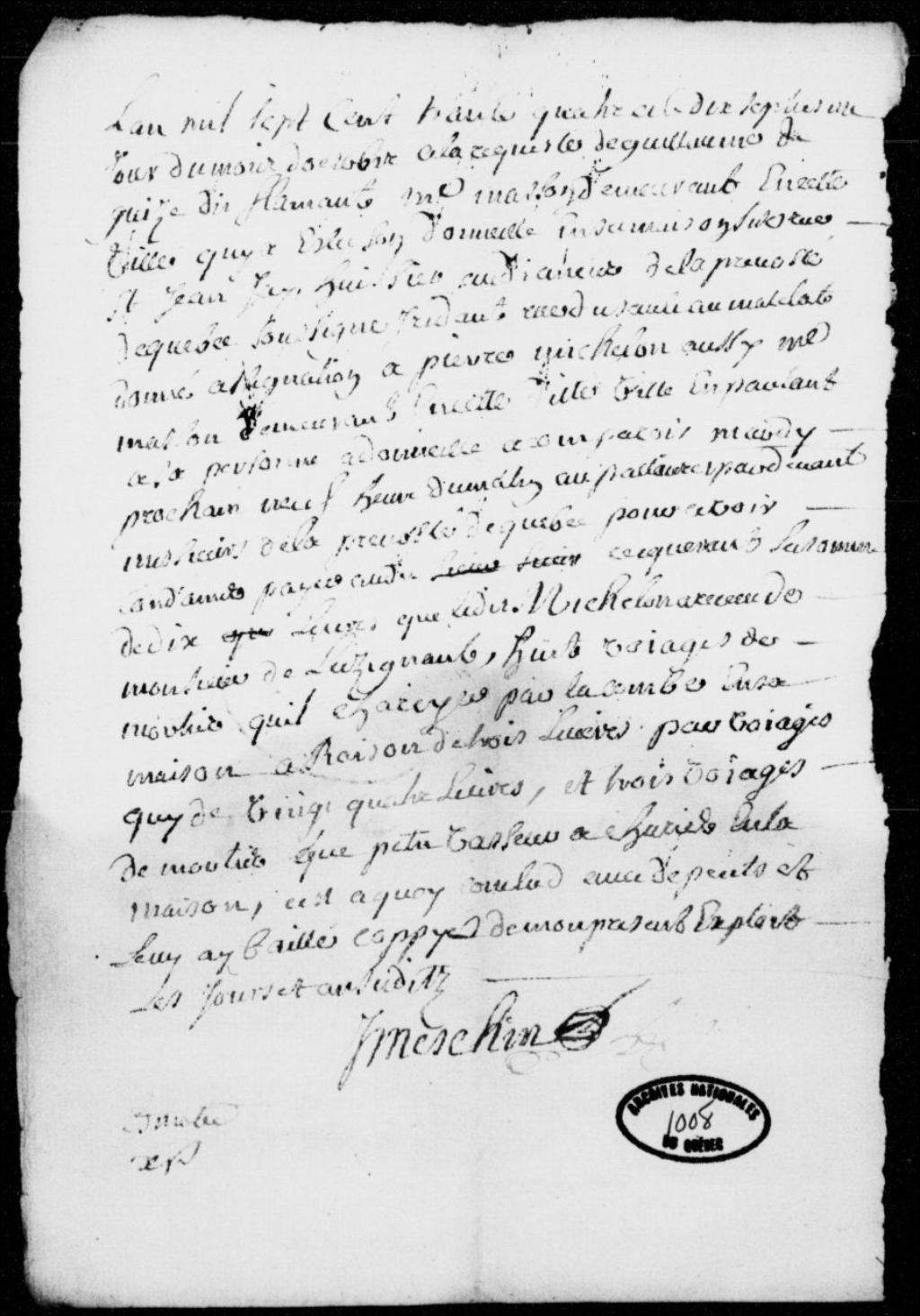À la requête de Guillaume Deguise dit Flamand, maître maçon demeurant rue Saint-Jean à Québec, assignation de Pierre Michelon, également maître maçon de Québec, afin qu'il paie au requérant 10 livres reçues du sieur de Lusignan et des voyages de mortier, avec dépens