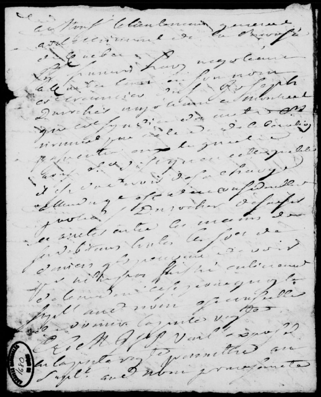 Requête de François Havy, négociant de Québec, tant en son nom que comme créancier de Joseph Durocher, négociant de Montréal, afin que les débiteurs de celui-ci soient saisis aux mains du sieur Cadet, de la rue des Remparts à Québec, suivie d'une ordonnance signée Daine autorisant ladite saisie, et d'un exploit de signification de la requête et de l'ordonnance audit sieur Cadet, avec assignation à lui donnée de comparaître, 21 décembre 1750 - 24 décembre 1750, Archives nationales à Québec, Fonds Prévôté de Québec, (03Q,TL1,S11,SS2,D1680).