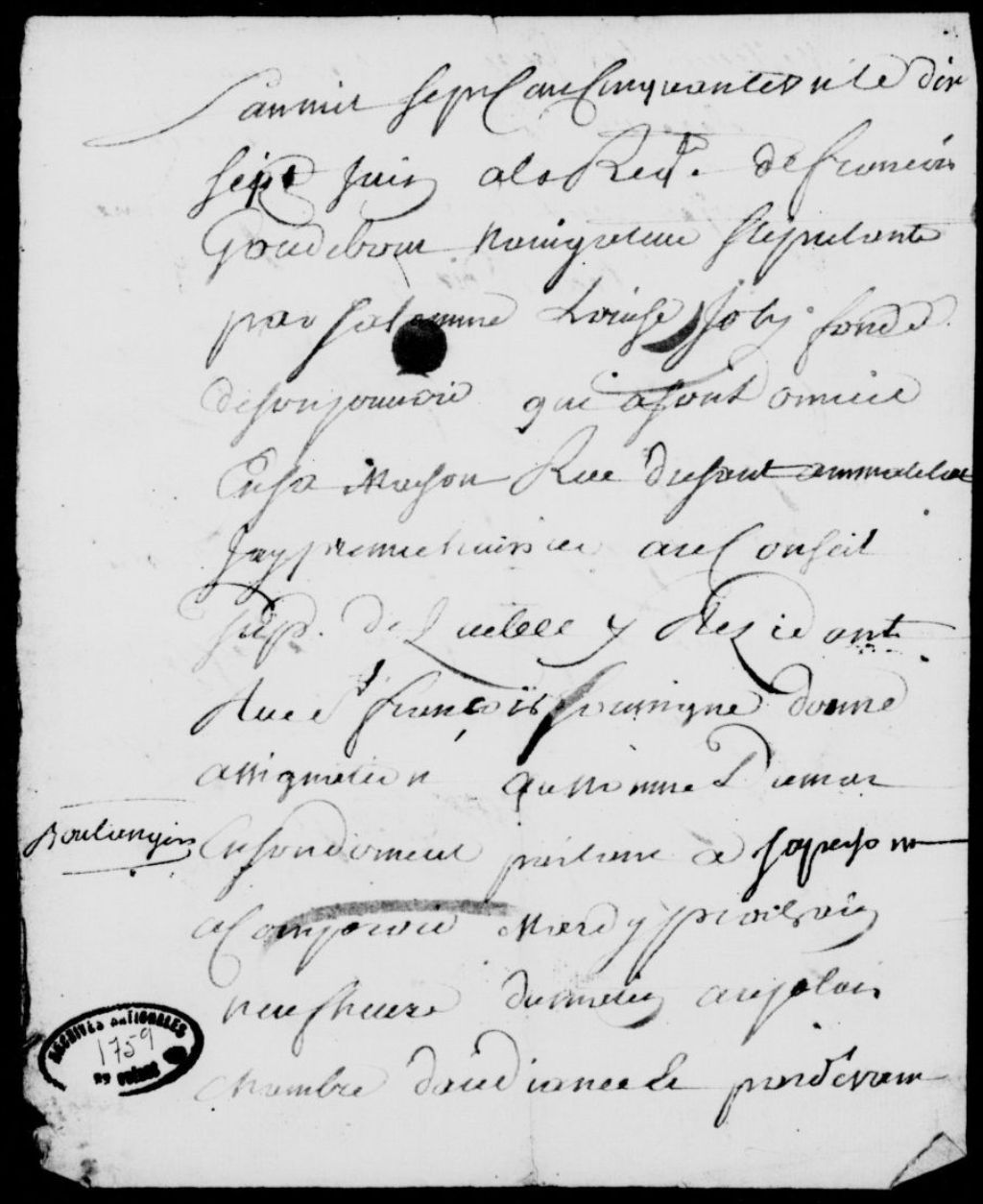 À la requête de François Godebout (Godbout), navigateur, stipulant par sa femme, Louise Joly, assignation du nommé Dumas, boulanger de Québec, afin qu'il paie au requérant les 11 livres et 10 sols qu'il lui doit pour des fournitures, avec dépens, 17 juin 1751, Archives nationales à Québec, Fonds Prévôté de Québec, (03Q,TL1,S11,SS2,D1759).