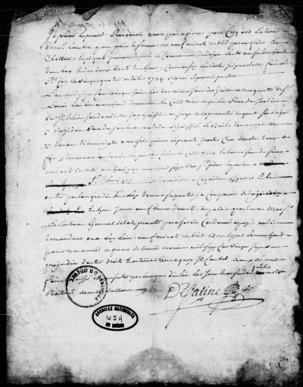 À la requête de Louis Lambert, marchand à Québec, assignation de Pierre Prévost, curé de Sainte-Foy, afin qu'il rembourse un billet lui accordant le fermage d'une terre du requérant, en fournissant à ce dernier neuf minots de blé, avec dépens, 2 juillet 1728, Archives nationales à Québec, Fonds Prévôté de Québec, (03Q,TL1,S11,SS2,D654).