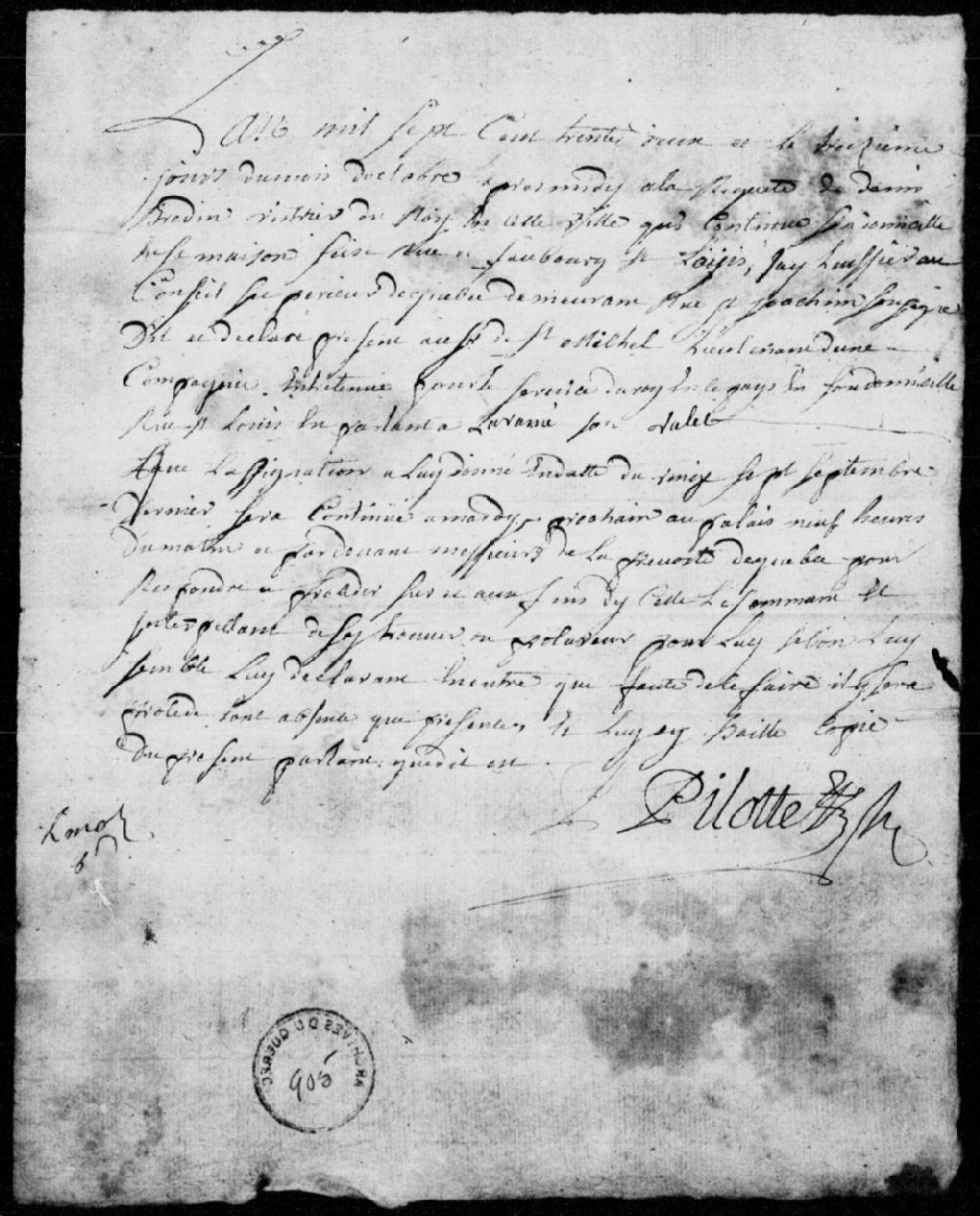 À la requête de Denis Berdin (Bredin), vitrier du Roi à Québec, domicilié sur la rue du faubourg Saint-Louis, déclaration au sieur de Saint-Michel, lieutenant d'une compagnie entretenue pour le service du Roi en ce pays, à l'effet que son assignation du 27 septembre précédent sera continuée le mardi suivant, et que droit sera fait malgré son absence