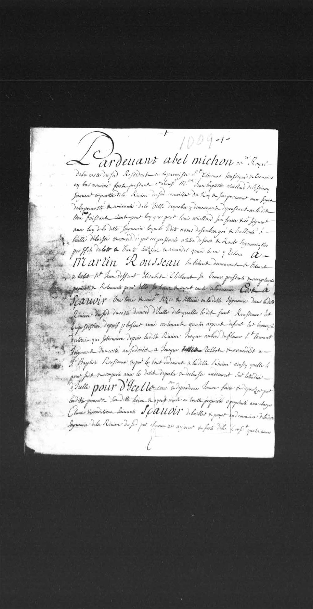 - Ce dosssier en matières civiles provient du Conseil supérieur de Québec. Ce dossier comprend des concessions de terres, situées en la seigneurie de la Rivière-du-Sud, par Jean-Baptiste Couillard de L'Espinay et Louis Couillard, son frère, à Élisabeth Thibault, veuve de feu Martin Rousseau, vivant habitant demeurant à l'île Saint-Jean; à Jacques Talbot dit Gervais, Baptiste Rousseau, Michel Arbour (Harbour), Alexandre Mercier, Augustin Malboeuf, Pierre Morin, tous habitants de ladite seigneurie de la Rivière-du-Sud; les procès-verbaux d'arpentage des terres de la Rivière-du-Sud, suivant un arrêt du Conseil supérieur de Québec; des exploits d'assignation et de signification; une procuration de Louis Couillard; les comptes fournis par Marie-Françoise Viennay-Pachot; des arrêts du Conseil pour l'appointement des parties et la communication des pièces justificatives; le compte que rend Jean-Batiste couillard devant le Conseil supérieur de Québec; une requête de Marie-Françoise Viennay-Pachot devant le Conseil supérieur de Québec; les défenses produites par Jean-Baptiste Couillard; une quittance; les débats relatifs aux comptes fournis par ladite Viennay-Pachot; une procuration