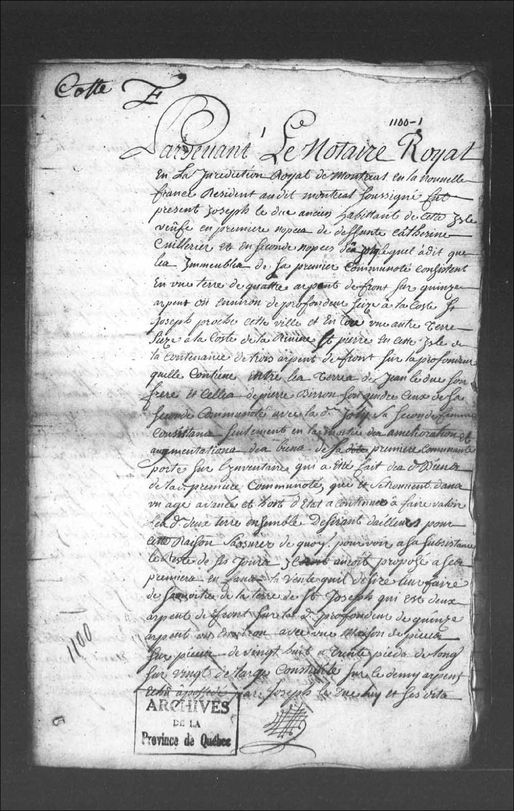 - Réponses que met devant le Conseil Supérieur Joseph Dupéré, ancien habitant de l'île de Montréal, veuf en premières noces de Catherine Cuillerier, dans son affaire avec Jean-René Gonneau (Goneau) dit La Couture, habitant de Montréal, et Marie Hurtubise, sa femme