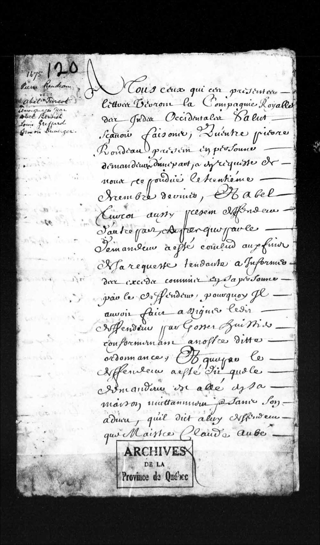 - Procédures criminelles contre Abel Turcot à la requête de Pierre Rondeau, habitant de l'île d'Orléans, pour excès (violence) commis sur sa personne