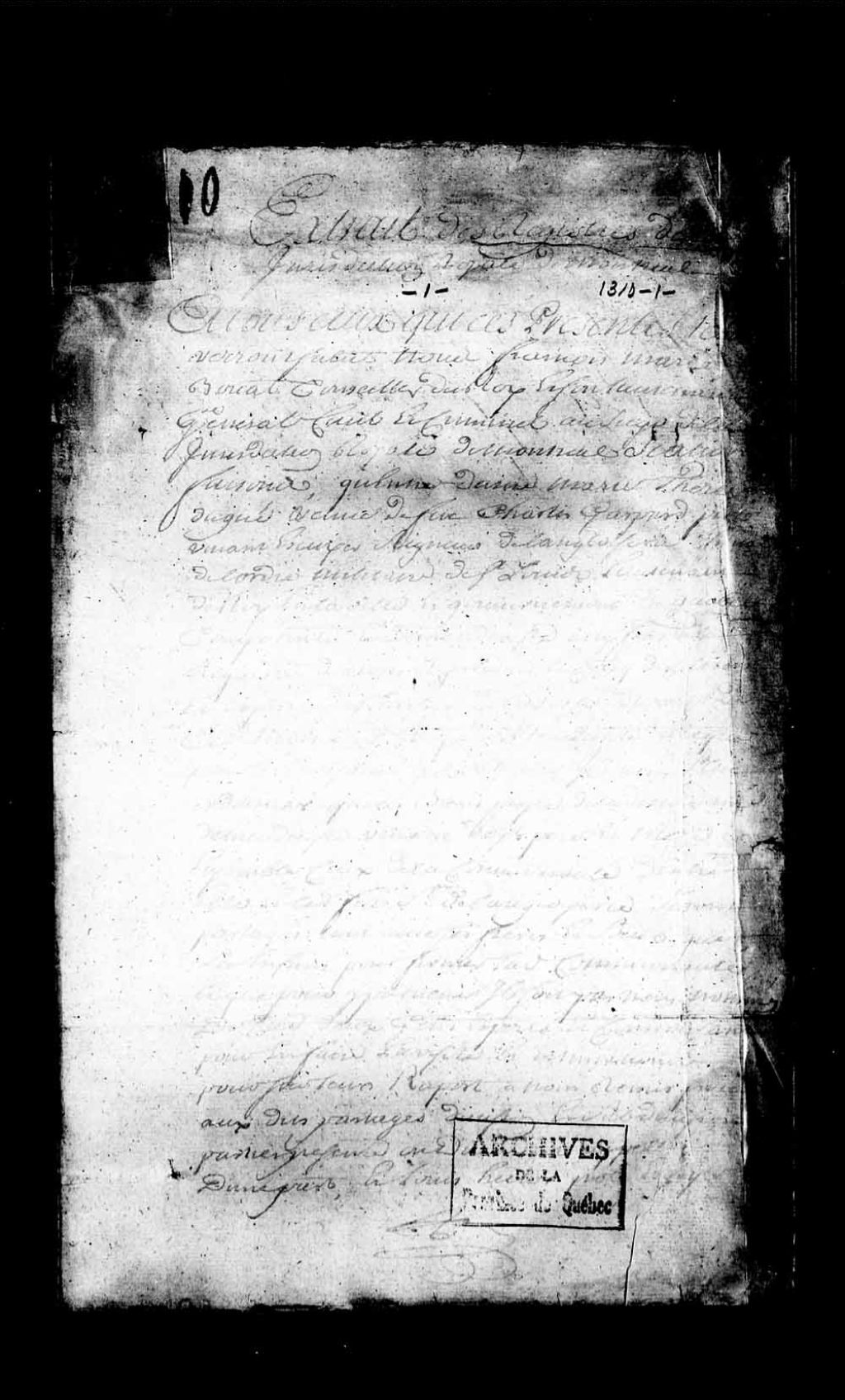 Procès de Louis-Hector Piot de Langloiserie contre Charles Ruette, écuyer, sieur d'Auteuil, créancier de Piot, à propos d'une action intentée par d'Auteuil contre la mère de Piot, Marie-Thérèse Dugué, veuve de Charles Gaspard Piot de Langloiserie, 18 août 1742 au 5 décembre 1742, Archives nationales à Québec, Collection Pièces judiciaires et notariales, (03Q,TL5,D1310).