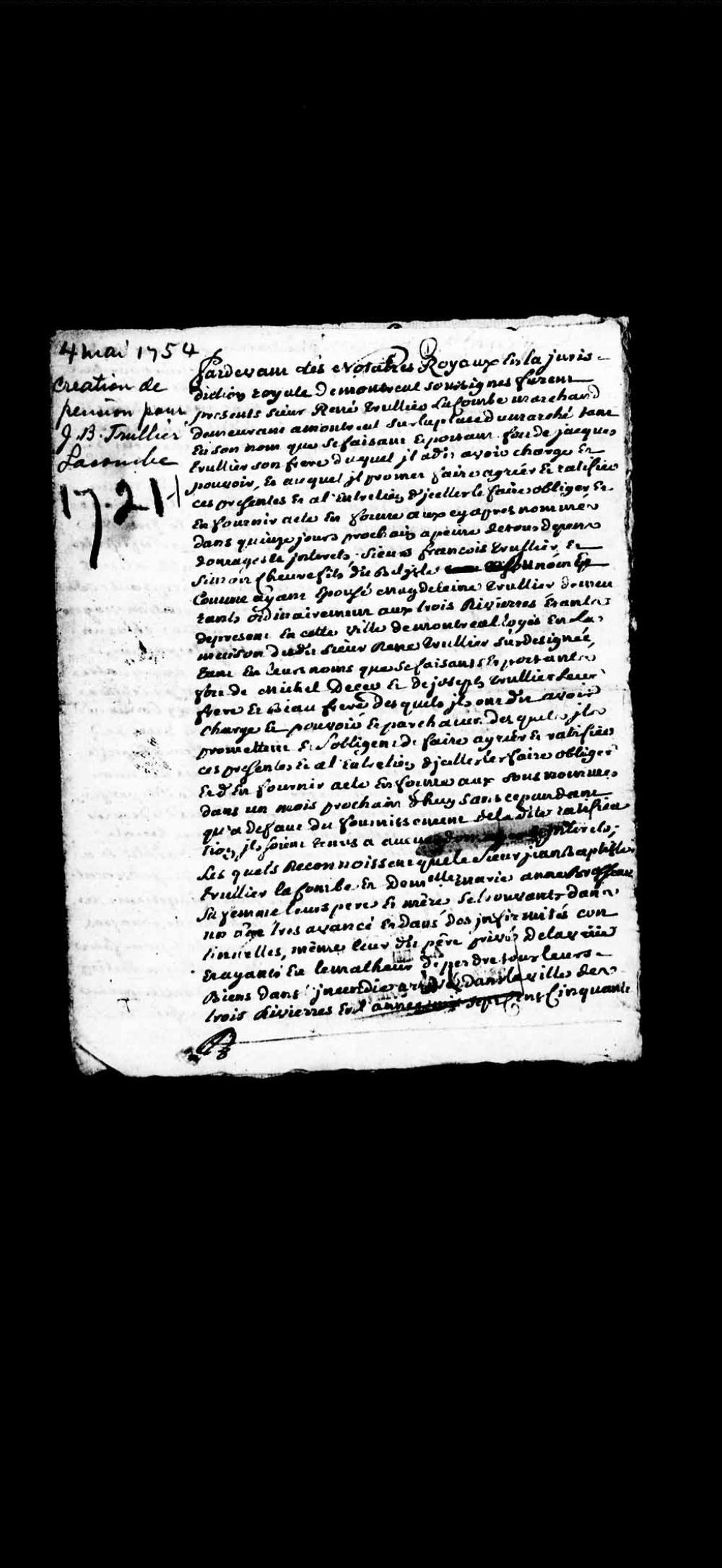 - Création d'une pension par René Truiller Lacombe, marchand, de Montréal, en faveur de Jean-Baptiste Truiller Lacombe