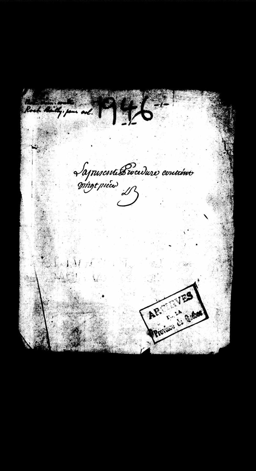 - Procès criminel contre Roch Bailly, 20 ans, tambour de la compagnie de la Colombière, accusé de vol au Château Saint-Louis à Québec