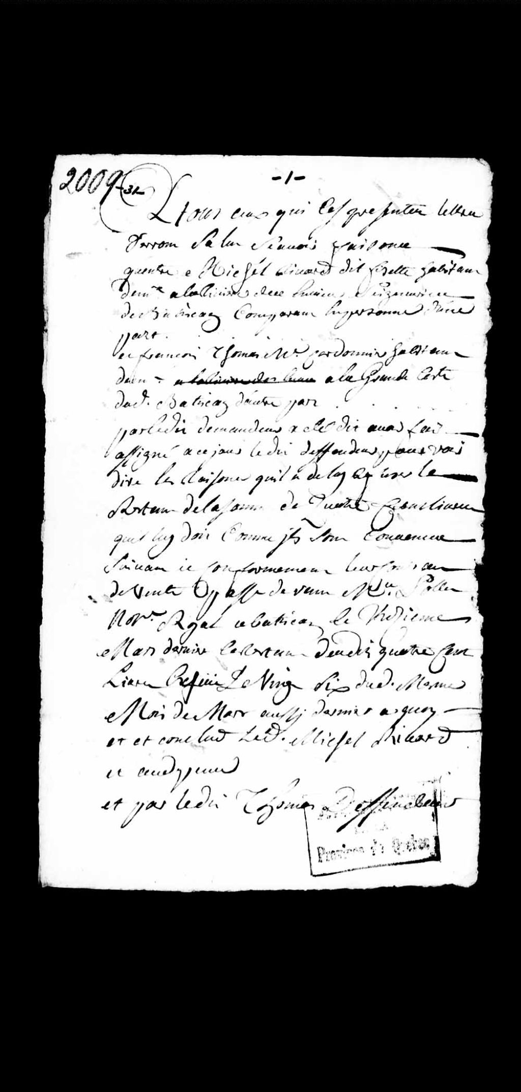Jugement rendu par le juge prévôt de la seigneurie de Batiscan, Joseph Rouillard dit Fonville, dans la cause opposant Michel Rivard dit Fiset, habitant demeurant à la rivière des Envieux en ladite seigneurie de Batiscan, à François Thomas, maître cordonnier habitant à la grande côte dudit Batiscan, concernant l'emprunt de quatre couteaux, lesquelles parties s'en sont tenues quittes à la suite d'une entente entre elles, 23 octobre 1738, Archives nationales à Québec, Collection Pièces judiciaires et notariales, (03Q,TL5,D2009-31).