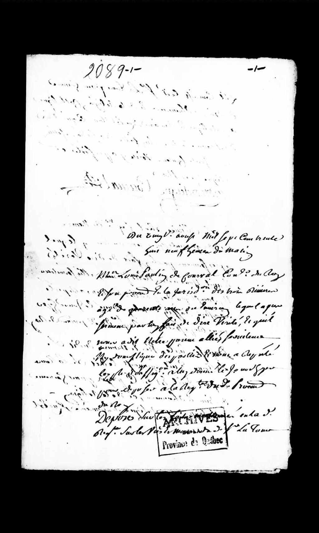 - Ce dossier provient de la Prévôté de Québec. Il comprend les témoignages et les dépositions des personnes suivantes : Louis Poulin de Courval, conseiller du Roi et son procureur en la Juridiction des Trois-Rivières, âgé de 40 ans; Olivier Abel (Abel Olivier), capitaine de navire, âgé de 45 ans. Ce dossier comprend la requête de Jean Latour; l'information faite en la Prévôté de Québec