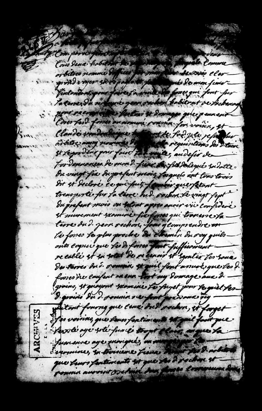 Rapport des arbitres nommés pour régler la difficulté entre Jean Rochon (Rocheron) et Roussin, habitants de Lachenaye (Lachenaie); les arbitres sont Jean-Baptiste Toin (Touin, Thouin) et Michel Legardeur, avec Claude Vondondaigne (Vandandaigue) comme sur-arbitre, 28 juillet 1737, Archives nationales à Québec, Collection Pièces judiciaires et notariales, (03Q,TL5,D2657).