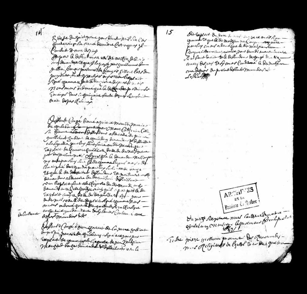 Sentence rendue en faveur de Pierre Groleau, procureur des Révérendes Mères de l'Hôtel-Dieu de Québec, dans le litige pour dettes l'opposant à Marc Tessier (Texier), habitant du village de Saint-Jérôme…, 6 mars 1687, Archives nationales à Québec, Collection Pièces judiciaires et notariales, (03Q,TL5,D2764-14).