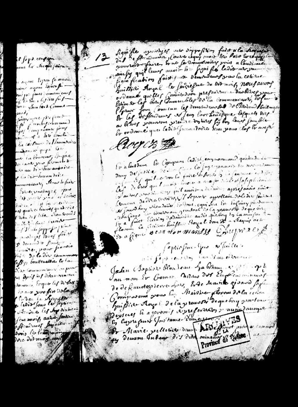 Appel de la sentence du juge prévôt de Notre-Dame-des-Anges par Jean Normand (Lenormand), dans la cause concernant la clôture de l'inventaire des biens de la communauté entre la défunte Anne Lelaboureur et ledit Jean Normand, ce dernier ayant choisi de porter la cause en question devant le lieutenant général de la Prévôté de Québec à la suite du déni de justice dont il dit avoir souffert…, 20 avril 1701, Archives nationales à Québec, Collection Pièces judiciaires et notariales, (03Q,TL5,D2782-21).