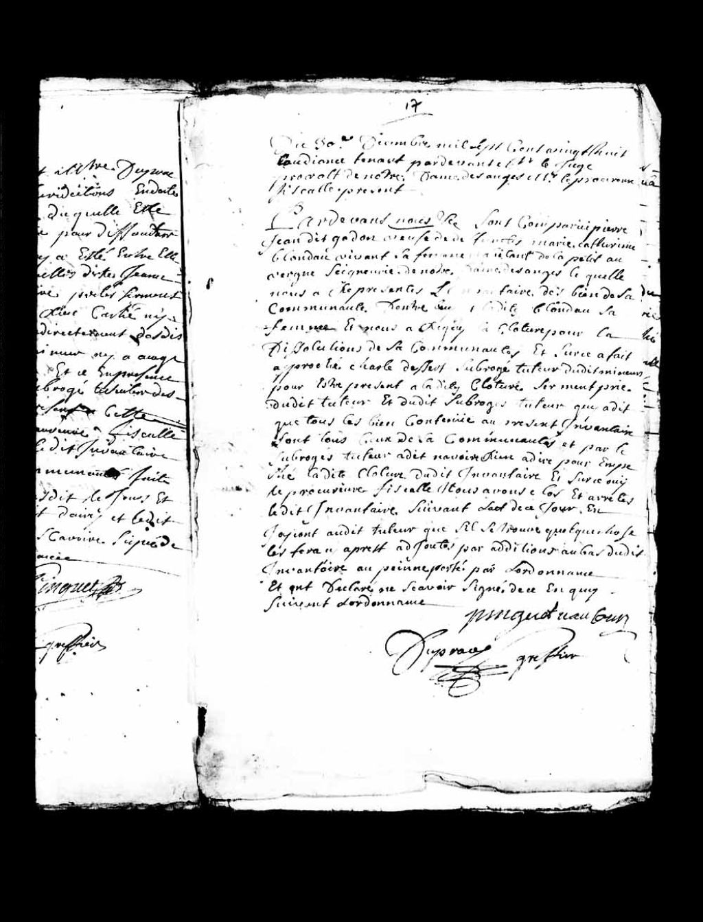 Clôture de l'inventaire des biens de la communauté entre Pierre Jean dit Godon, habitant de la Petite Auvergne en la seigneurie Notre-Dame-des-Anges, et la défunte Marie-Catherine Blondeau, 30 décembre 1728, Archives nationales à Québec, Collection Pièces judiciaires et notariales, (03Q,TL5,D2901-14).