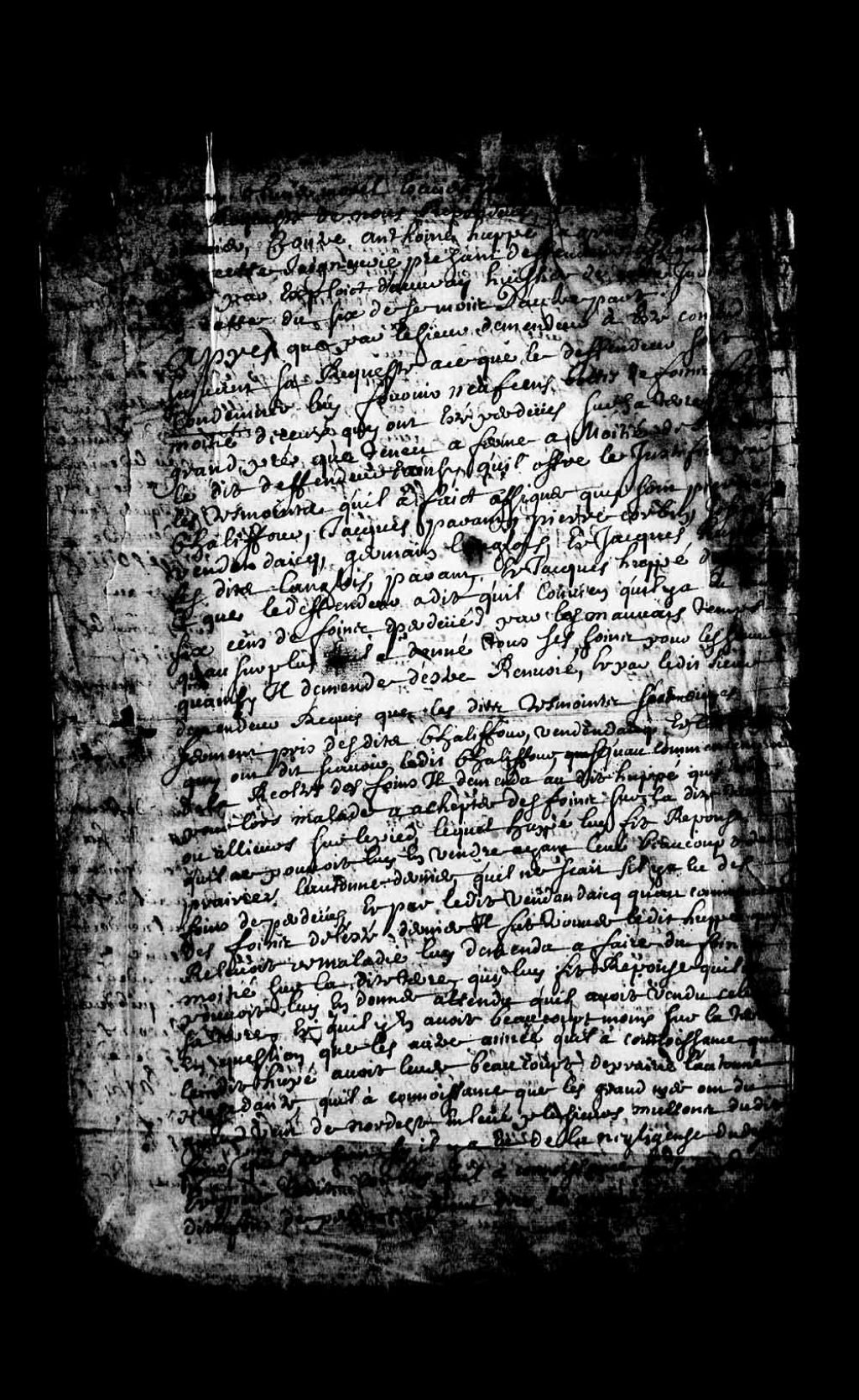 Jugement rendu en faveur de Barthélemi Coton, habitant de L'Auvergne, dans la cause l'opposant à Marie Lemoine, veuve de Jacques Duhault, habitant de Charlesbourg, concernant le paiement par ladite Lemoine de deux années de fermage d'une vache (animaux), laquelle Lemoine est condamnée à payer au demandeur la somme de 24 livres pour lesdites deux années de fermage sauf à elle de justifier qu'elle a déjà payé ladite somme, 9 février 1702, Archives nationales à Québec, Collection Pièces judiciaires et notariales, (03Q,TL5,D3230-1).