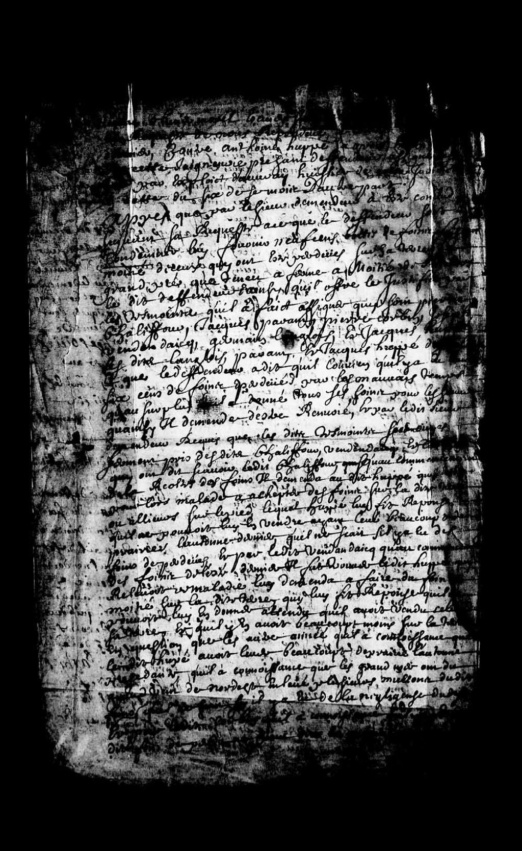 Jugement rendu en faveur de Olivier Morel, sieur de LaDurantaye, écuyer, dans la cause l'opposant à Antoine Huppé dit Lagroix, habitant de Notre-Dame-des-Anges, concernant des bottes de foin perdues à cause du mauvais temps sur une terre dudit Morel que ledit Huppé avait en fermage, lequel Huppé est condamné à livrer au demandeur 300 livres de foin