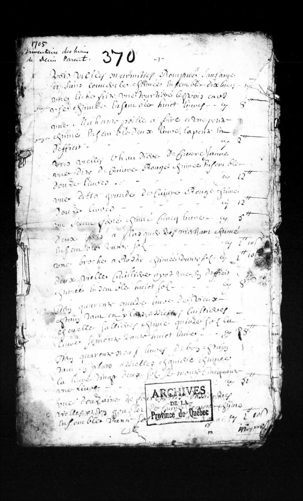 - Inventaire des biens de Jacques Parent et de défunte Louise Chevalier