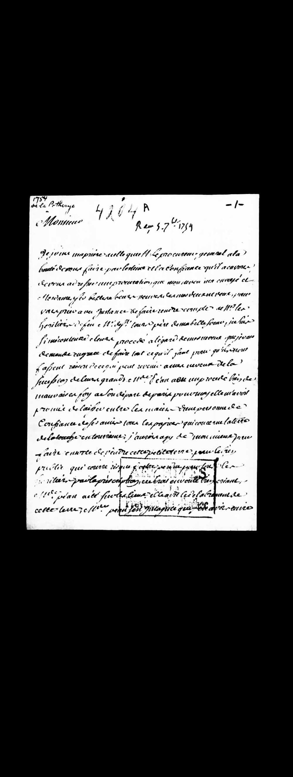 - Ce dossier comprend une lettre de M. Joly de Fleury, procureur au Parlement de Paris; deux lettres de mademoiselle de la Potherie (Poterie), relatives à la succession Saint-Ours et La Potherie, jointes à la lettre de Joly et adressées à ce dernier, le priant de les envoyer au procureur général; la réponse de Louis-Guillaume Verrier