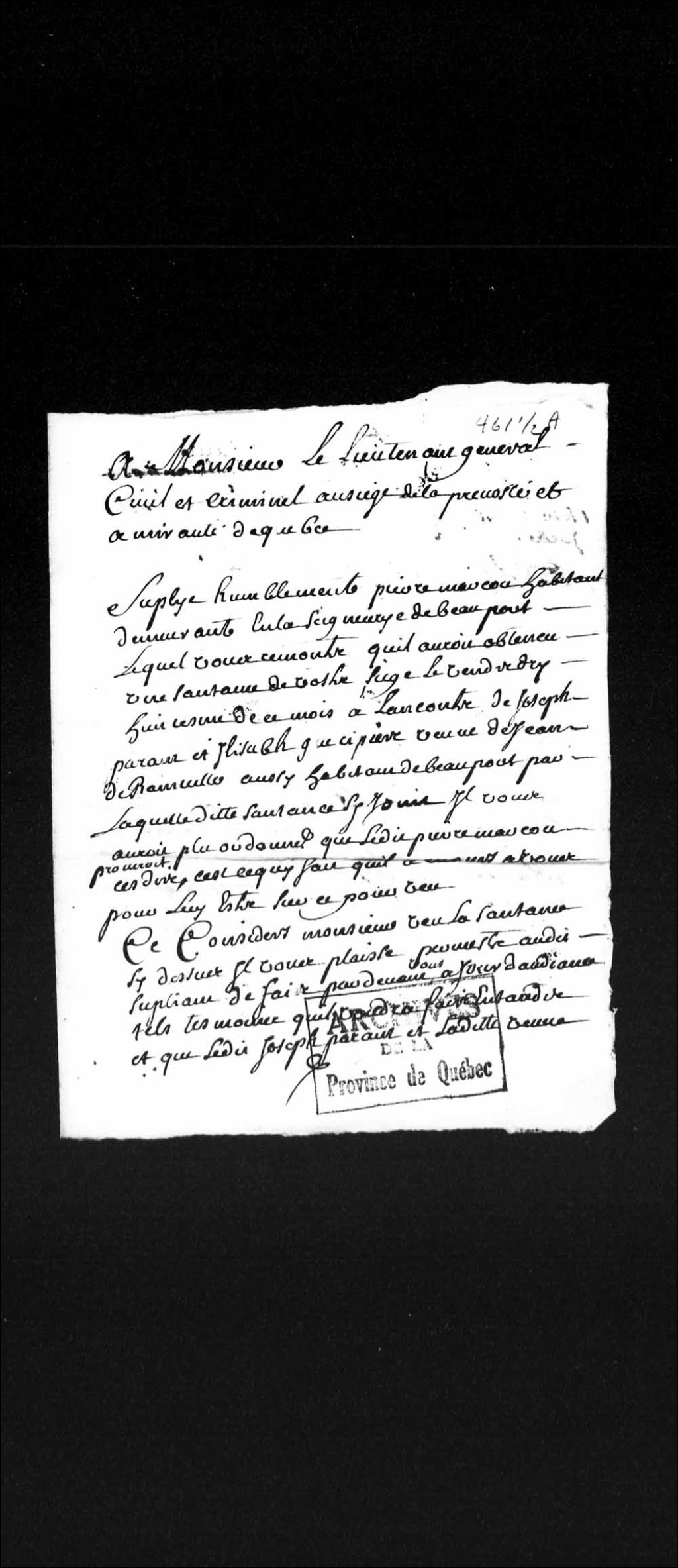 - Ce dossier en matières civiles provient de la Prévôté et Amirauté de Québec et contient les interrogatoires ou les dépositions des personnes suivantes : Marie Morin, femme de Pierre Chaignon (Chagnon), 65 ans, demeurant chez le nommé Dauphin, son fils, rue Saint-Nicolas; Marie-Thérèse Leblanc, veuve de Pierre Lavallée, demeurant au village de Saint-Joseph, paroisse de Beauport, 53 ans. Ce dossier comprend une requête adressée à la Prévôté de Québec; deux exploits d'assignation à comparaître; une enquête faite par le lieutenant général civil et criminel de la Prévôté et Amirauté de Québec