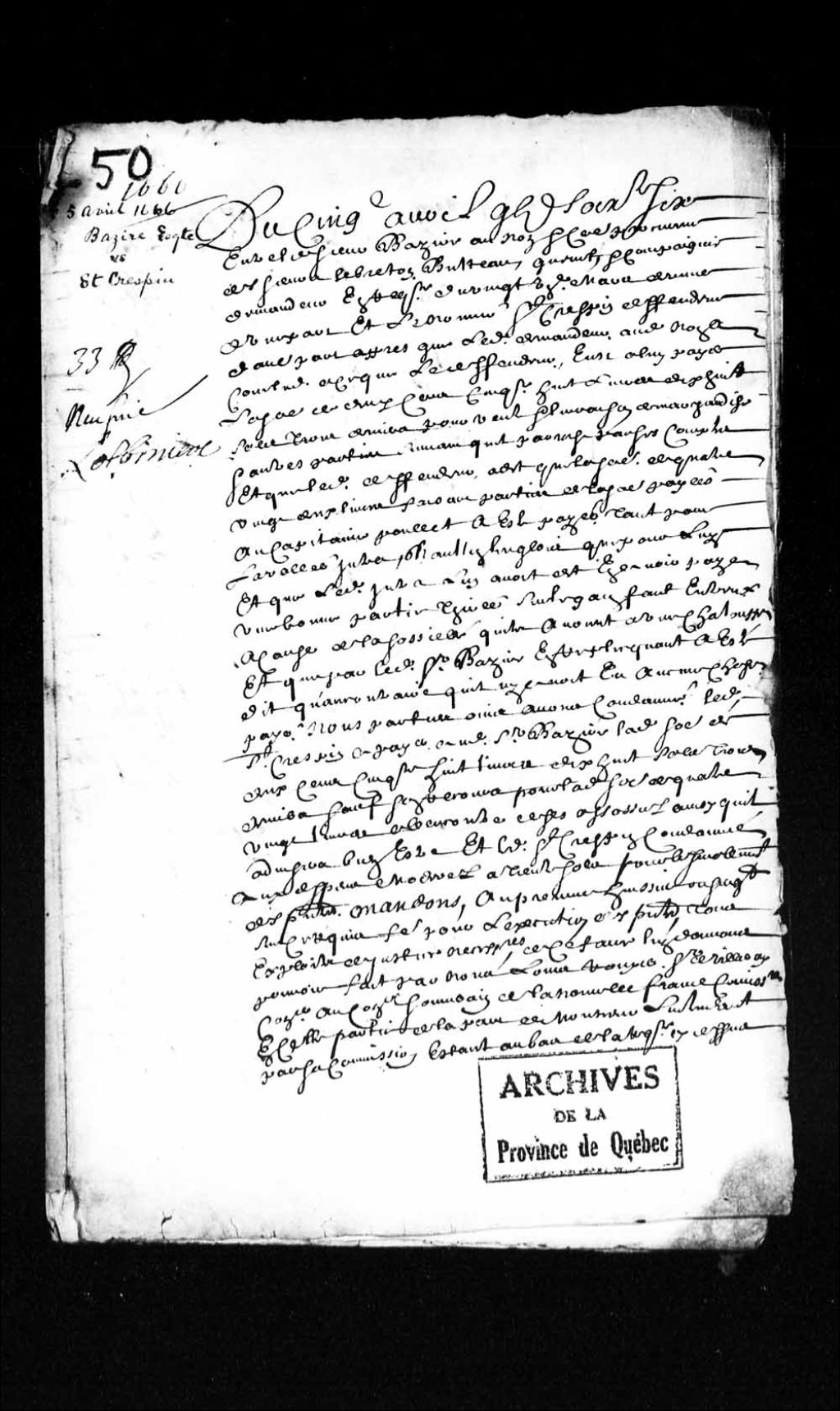 - Ce dossier en matières civiles provient de la Prévôté de Québec