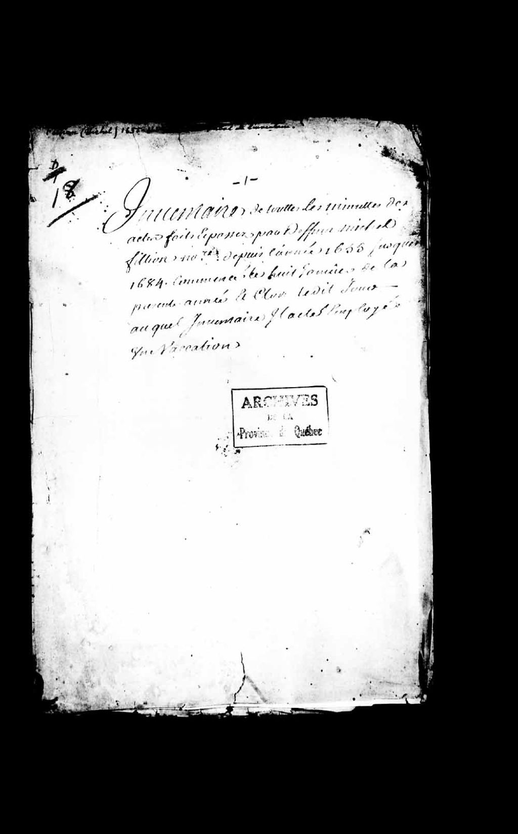 Inventaire des minutes des actes de Michel Fillion, passés à Québec, pendant les années 1655 à 1684, déposé chez le sieur Rageot de Beaurivage, par monsieur André de Leigne, en 1727 et procès-verbal de l'inventaire desdites minutes, fait par Louis-Guillaume Verrier, procureur général du Roi, au Conseil supérieur de Québec et commissaire nommé par arrêt du Conseil d'État du Roi, le 25 mars 1730, pour le dépouillement des minutes des notaires présentement en charge ou décédés, dans l'étendue de la Prévôté de Québec, pour les années 1663 à 1687