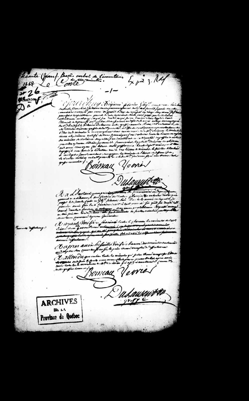 Procès-verbal de l'inventaire des minutes de Jean Lecomte, entre le 1er mars 1668 et le 30 novembre 1668, seule année où il paraît avoir exécuté les fonctions de notaire en la Prévôté de Québec, fait par Louis-Guillaume Verrier, procureur général du Roi, au Conseil supérieur de Québec et commissaire nommé par arrêt du Conseil d'État du Roi, le 25 mars 1730, pour le dépouillement des minutes des notaires présentement en charge ou décédés, dans l'étendue de la Prévôté de Québec
