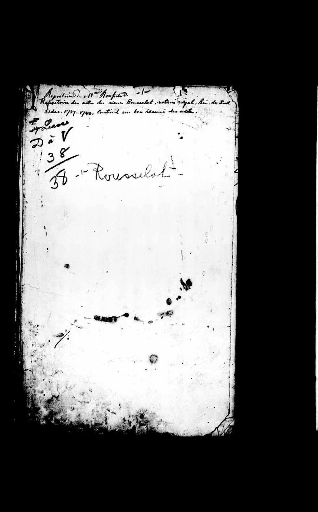 Répertoire des actes de Pierre-François Rousselot, notaire royal de la Rivière-du-Sud, passé entre le 31 décembre 1737 et le 12 avril 1740, paraphé par le lieutenant général civil et criminel de la Prévôté de Québec, Pierre André de Leigne, le 15 mars 1738