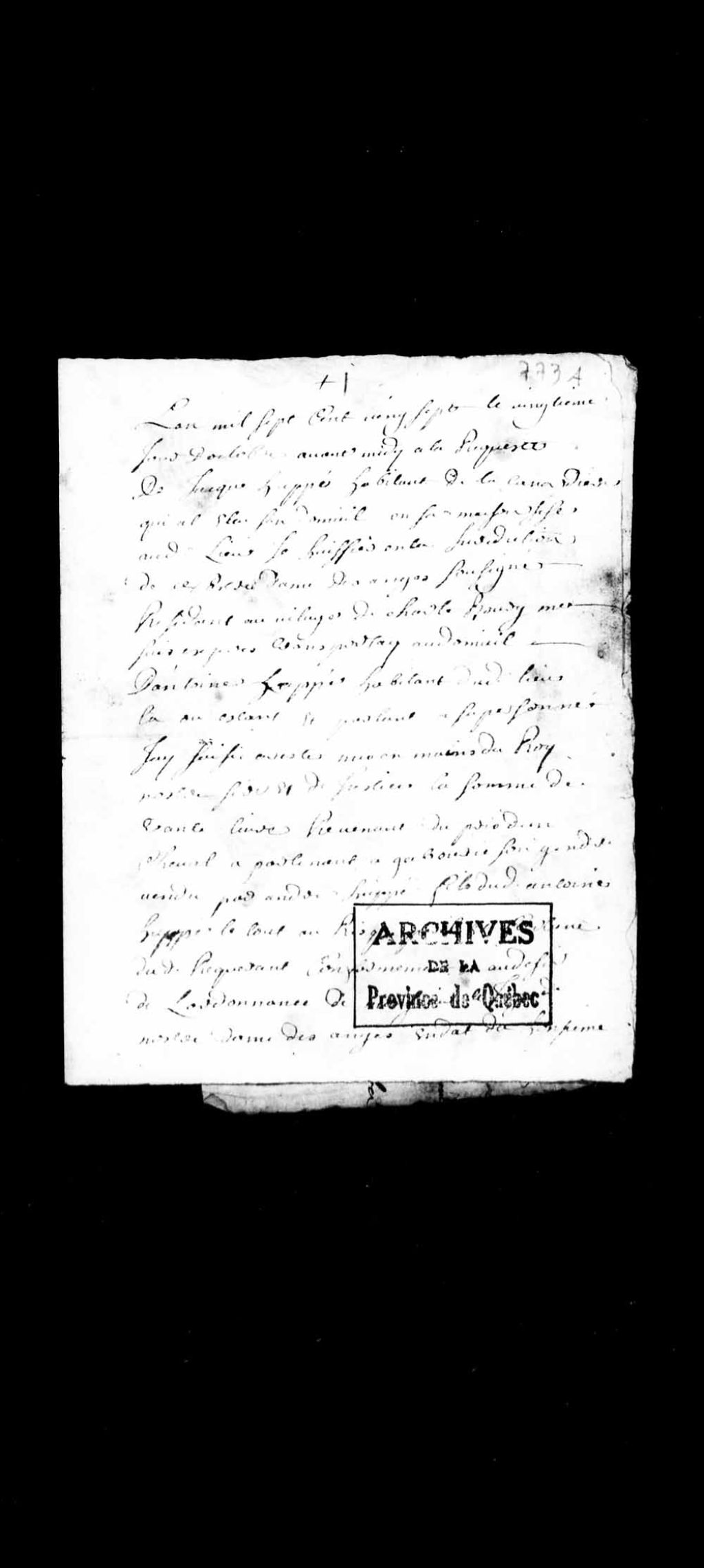 Procès entre Joseph Gaboury, habitant de Saint-Vallier, et André Lagrois, habitant de Beauport, au sujet de la vente d'un cheval, 20 octobre 1727 - 9 janvier 1730, Archives nationales à Québec, Collection Pièces judiciaires et notariales, (03Q,TL5,D773).