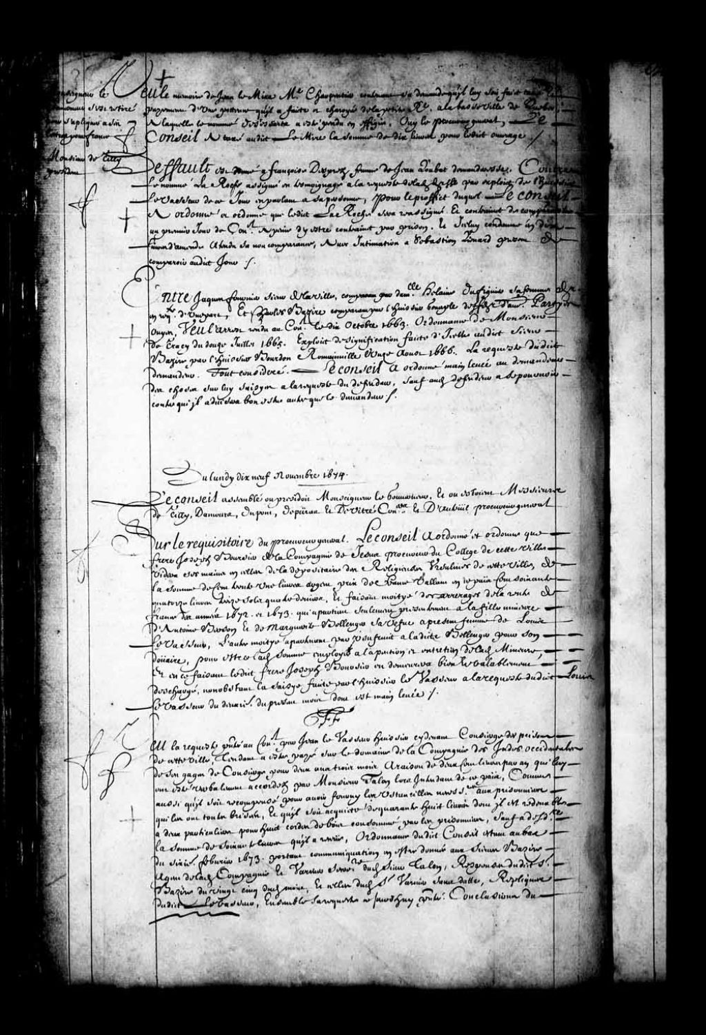 Main-levée à Jacques Fournier sieur de LaVille des effets saisis à la requête de Charles Bazire, 5 novembre 1674, Archives nationales à Québec, Fonds Conseil souverain, (03Q,TP1,S28,P1009).