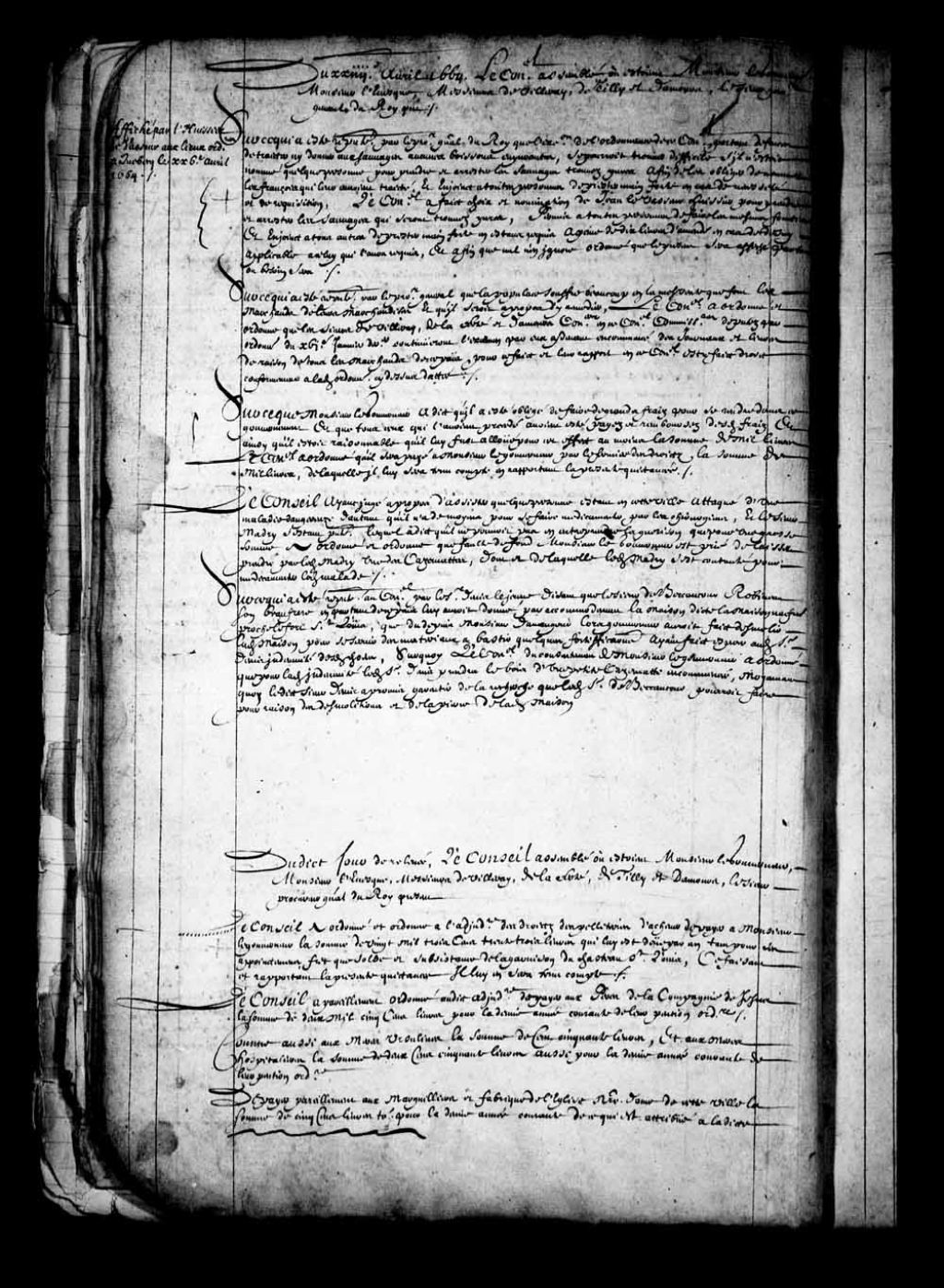 Ordre de laisser à Jean Madry pour médicamenter une personne attaquée de maladie dangereuse, une des casemates en paiement, faute de fond, 24 avril 1664, Archives nationales à Québec, Fonds Conseil souverain, (03Q,TP1,S28,P105).