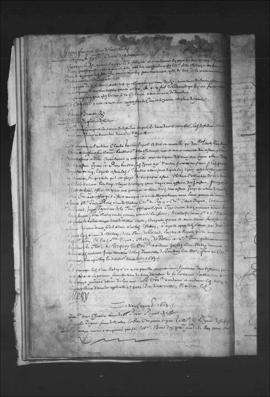 Ordre à Anne Chevalier, femme de Pierre Pinguet et Jeanne Lelièvre, femme de Nicolas Le Roy de comparaître par devant le sieur Bourdon, procureur général du Roi, 10 novembre 1663, Archives nationales à Québec, Fonds Conseil souverain, (03Q,TP1,S28,P1436).