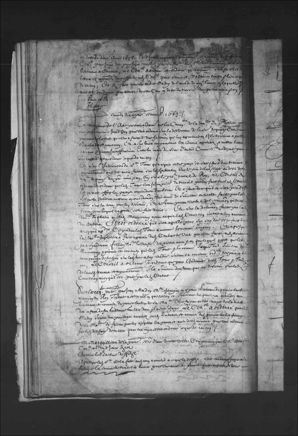 Arrêt déchargeant le sieur Jean Madry, chirurgien, lieutenant du premier barbier et chirurgien du Roi de la tutelle des enfants de feu Guillaume Gauthier et demandant à ce dernier de faire appeler les parents et amis des enfants, 17 novembre 1663, Archives nationales à Québec, Fonds Conseil souverain, (03Q,TP1,S28,P1454).