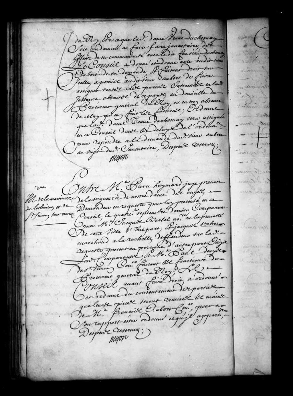 Du consentement des parties, le Conseil donne ordre, avant de faire droit, de remettre les pièces entre les mains de François Aubert, conseiller, dans la cause de Pierre Haimard contre Jacques Trehet