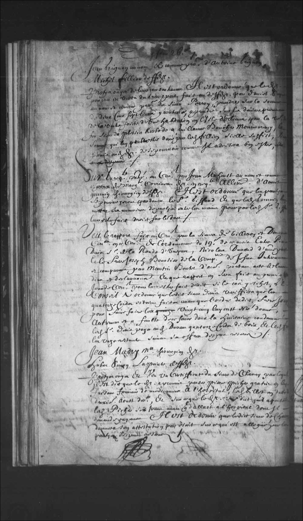 Ordre à Jean Maheu, procureur de Marguerite Corriveau et à Anet Gomin, chirurgien de se présenter par-devant le sieur Giffard, 26 janvier 1664, Archives nationales à Québec, Fonds Conseil souverain, (03Q,TP1,S28,P1517).